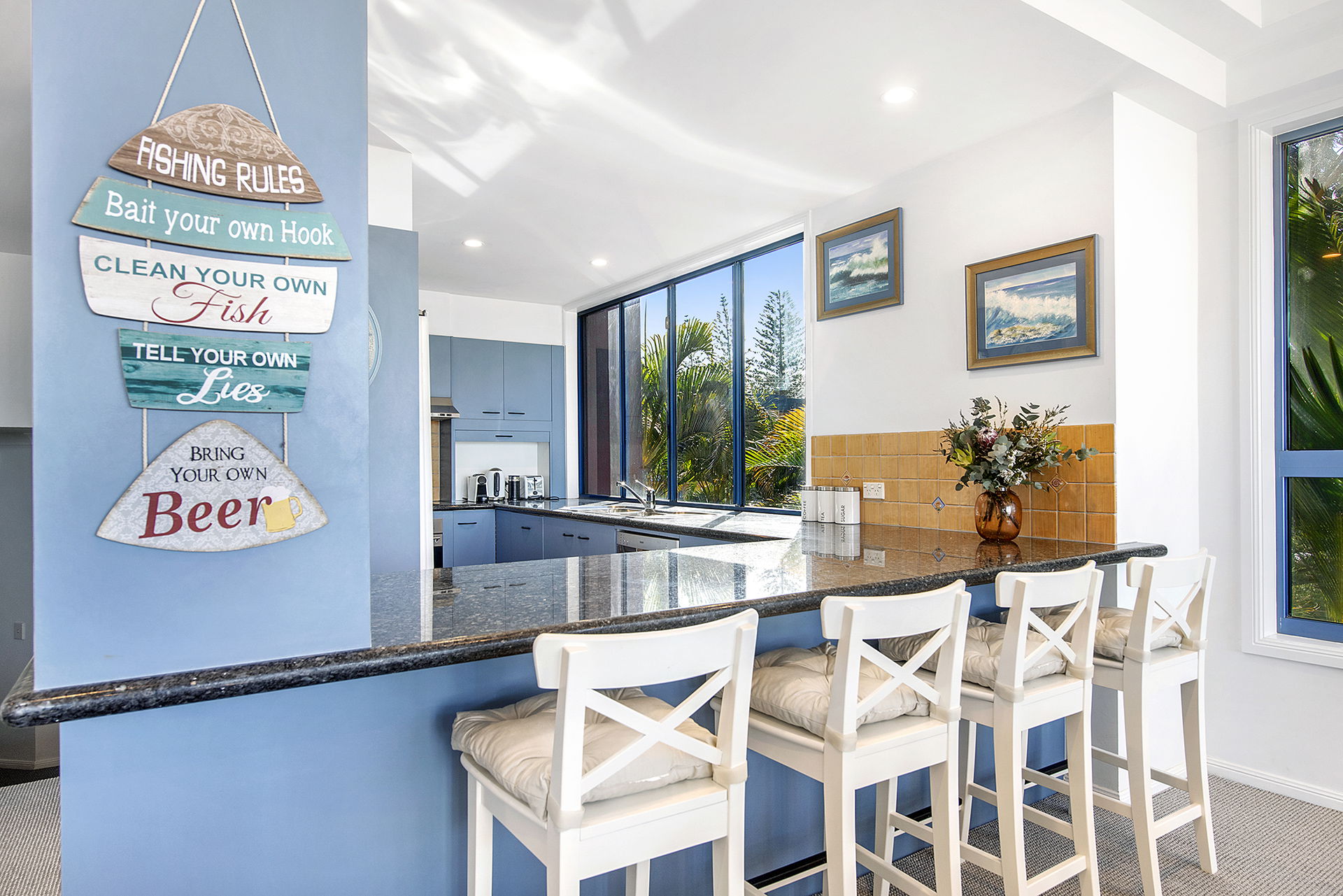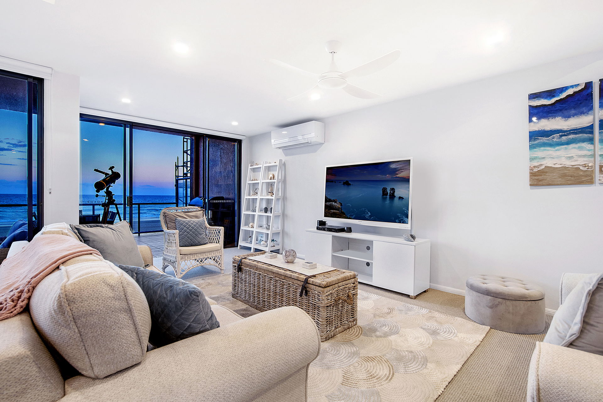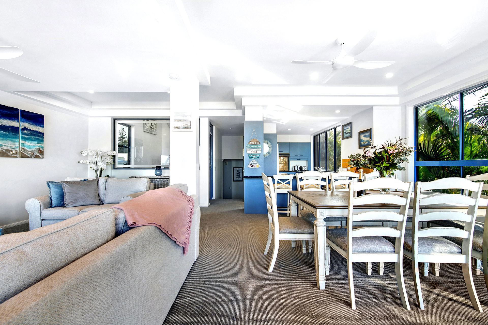 This bright and spacious family home allows for indoor-outdoor living at its best with direct beach access for your stroll down the famous Mermaid Beach. Play volleyball on the beachside court, use the beachside gym equipment or if you prefer to just relax you have the prime position on the balacony to watch the world and whales go by.
