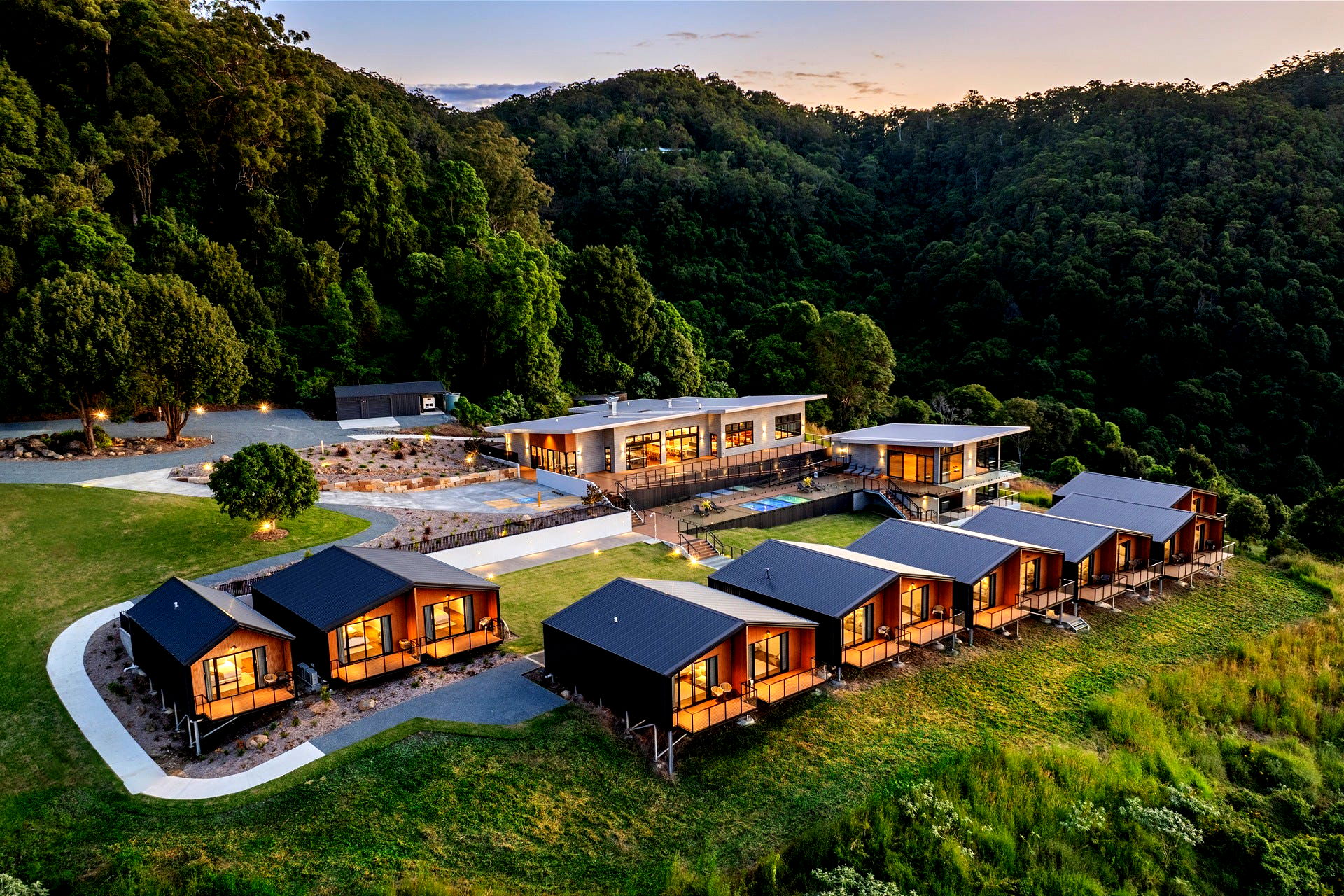 Privacy, scale and amenity: the Currumbin Valley Eco Retreat is an intentional space for wellness, work and play. Enjoy the amenities and design of a large scale retreat, in private villas surrounded by bush and panoramic views. A place to slow down, reconnect and be re-made by the view.