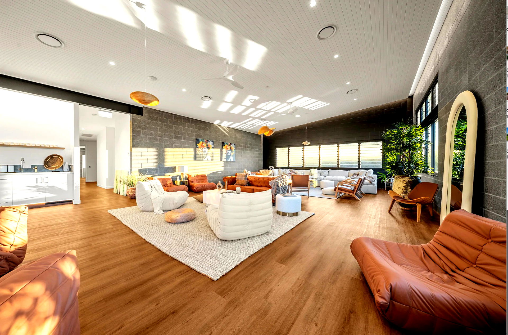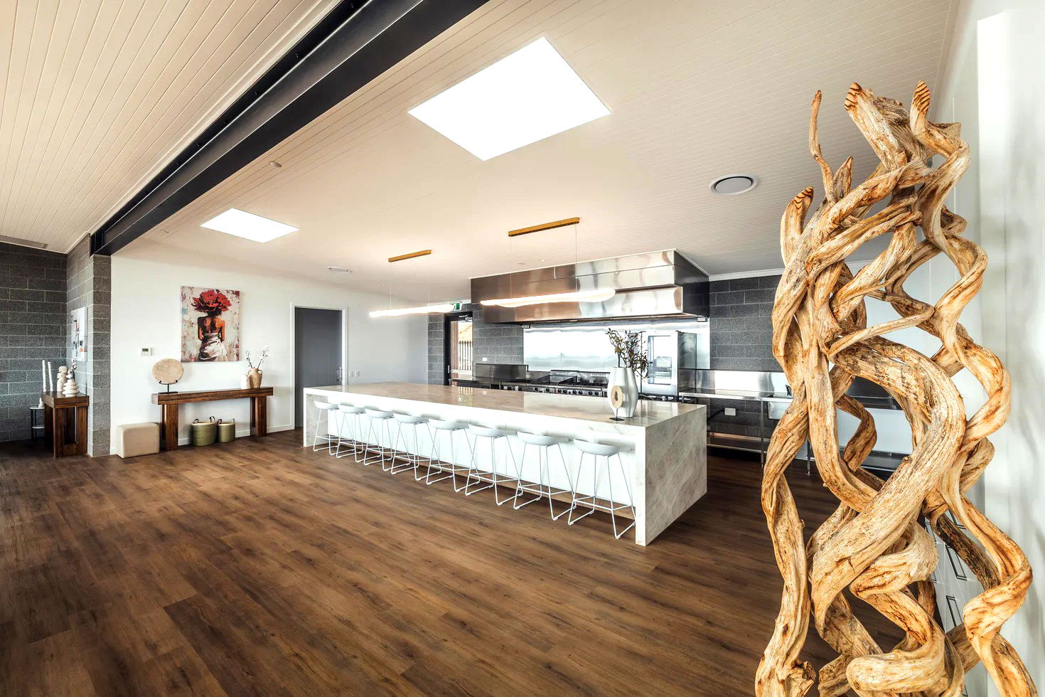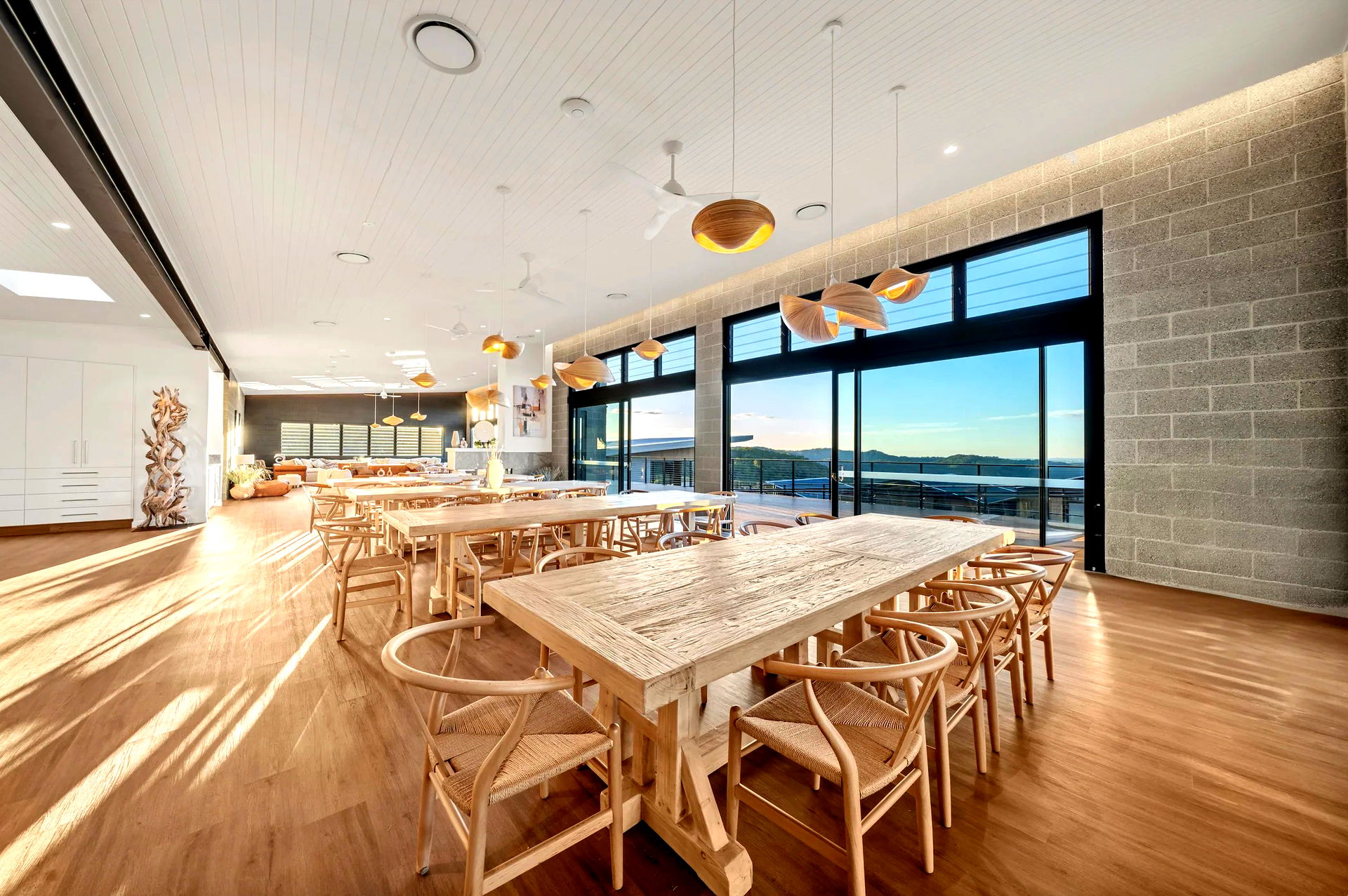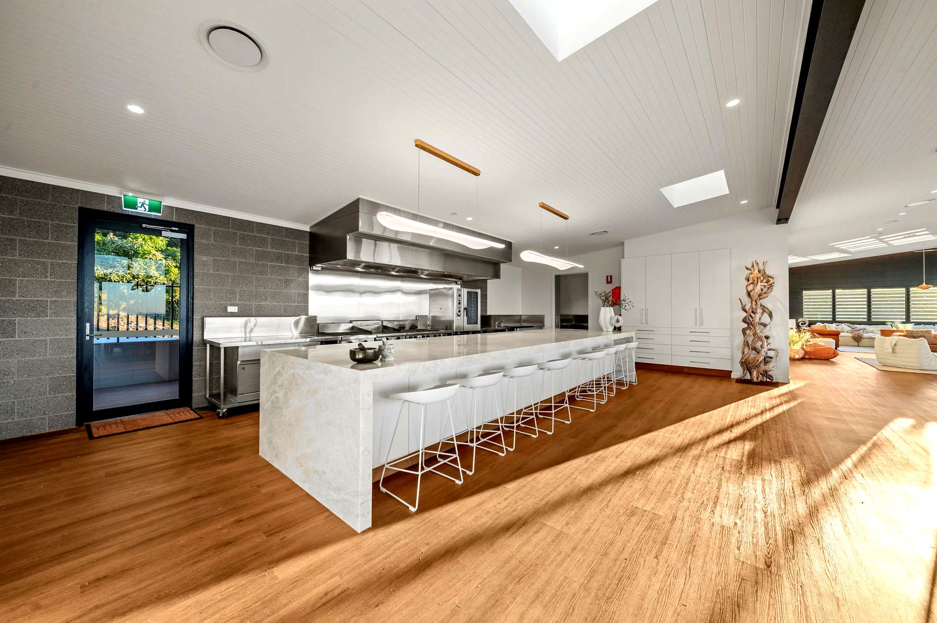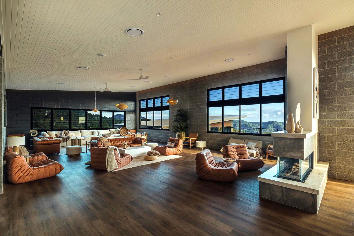 Valley Room: yoga and meditation studio. A large open room with timber floors and eastern exposure ideal for sunrise classes and gentle workshops. Breeze Room: functional gym. A completely equipped fully functional gym with free weights, power rack and all the essentials. The Breeze Room also doubles as a space for yoga training and high energy group coaching classes. Chef’s Kitchen: communal kitchen for group dining and experiences. Big Lounge and Big Living Room: a series of breakout spaces with comfortable couches, tables and chairs, ideal for smaller groups, presentations, or a space to simply unwind and talk quietly. Six multipurpose breakout rooms in total. All breakout rooms are located away from villa units to minimise disturbance and disruption.