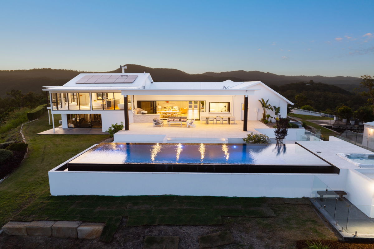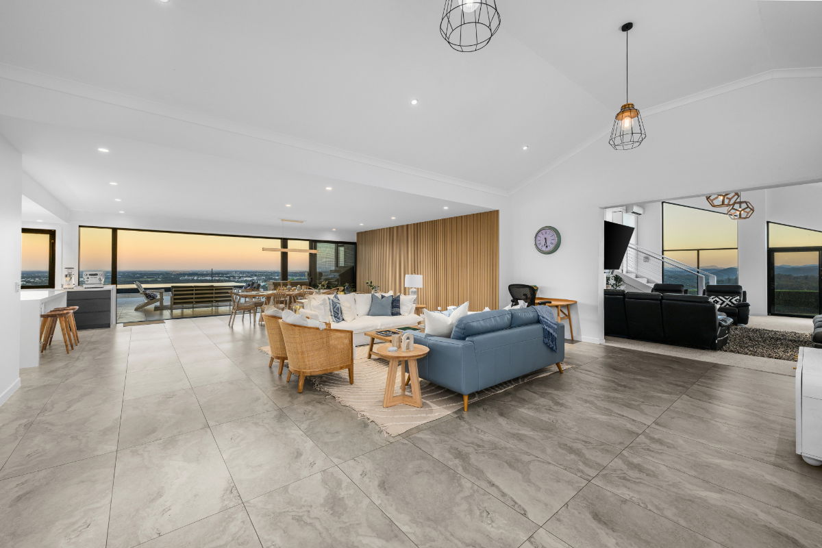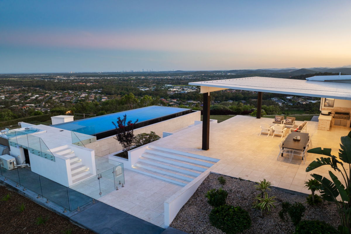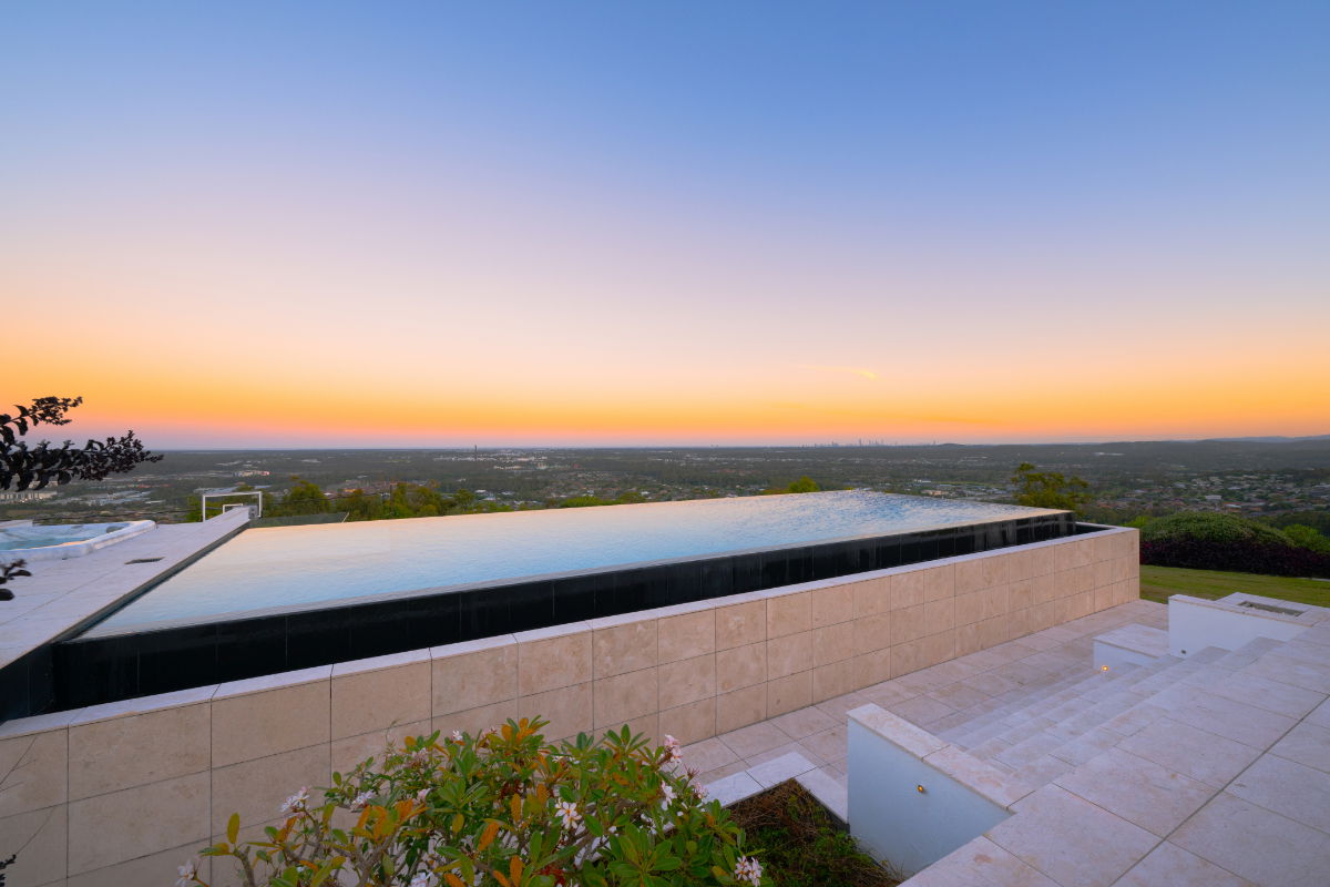 Float over the Gold Coast in a 20-acre estate home with ocean and skyline views, and huge windows to drink them in. This mountain villa wows inside and out with marble and limestone accents, wood-burning fireplace, basketball & tennis courts, and spectacular infinity pool. A recent $1million+ architectural renovation of the entire house has created a modern and stunning residence. The panoramic views are unparalleled anywhere on the Gold Coast, with views of Brisbane City to the entire Gold Coast glitter strip - including the Pacific Ocean. Totally exclusive and private with a gated fence.