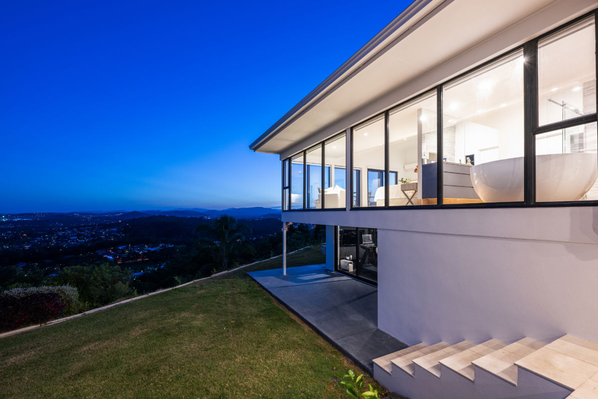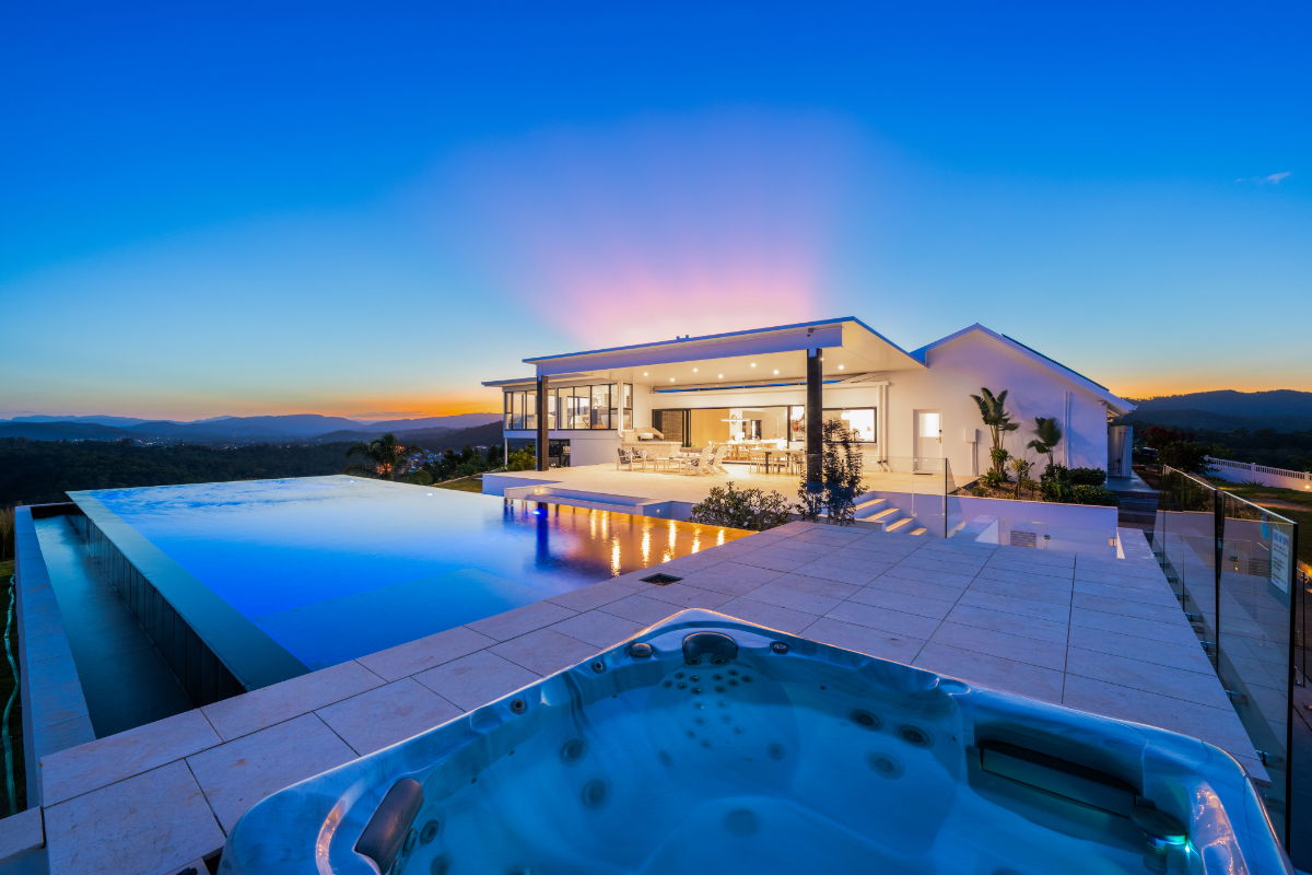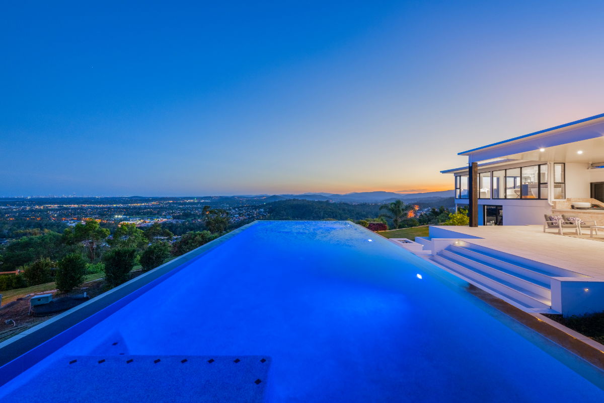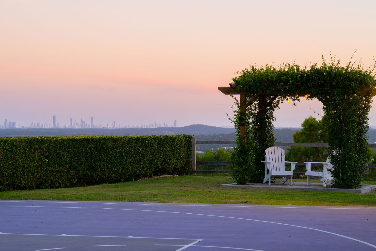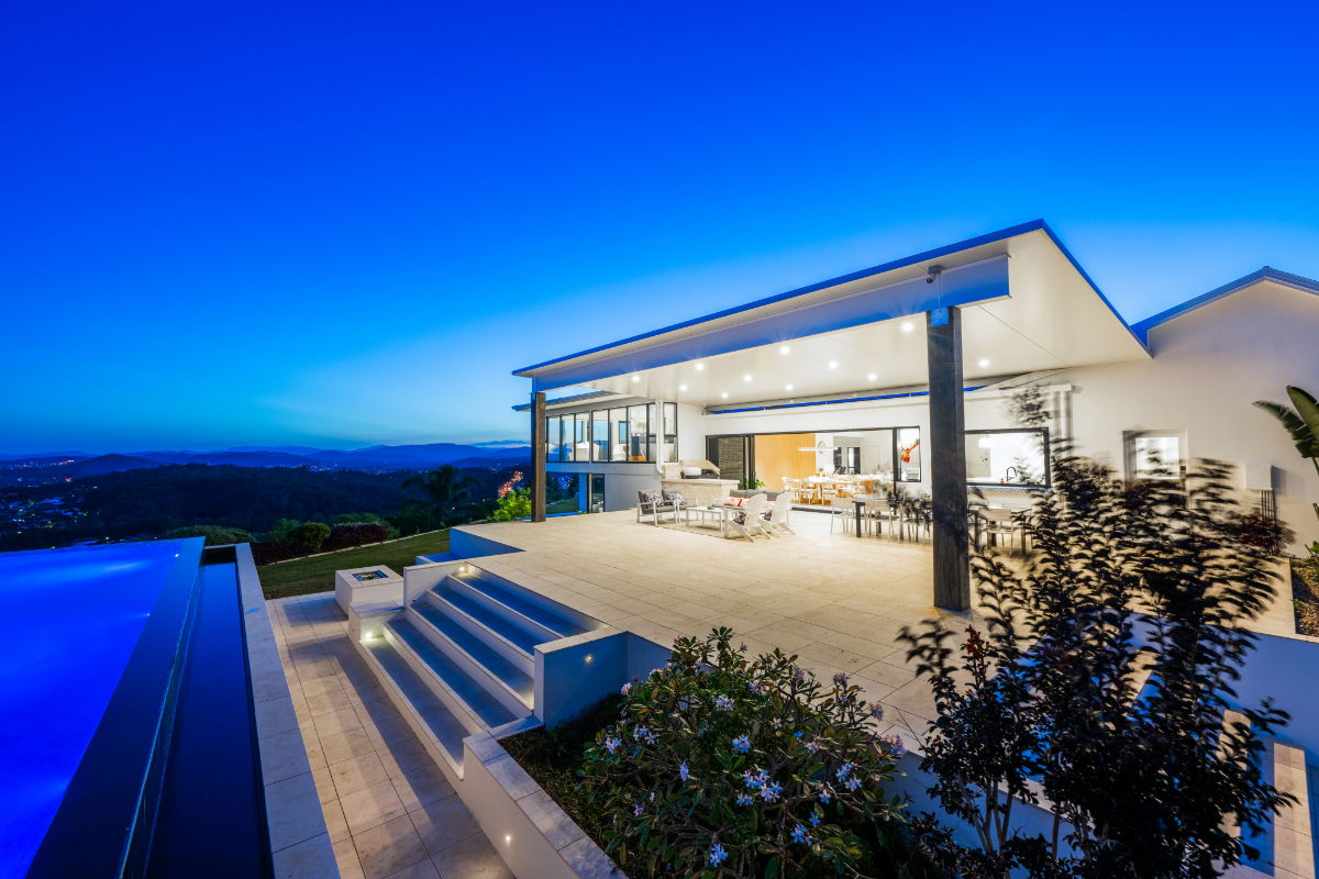 Float over the Gold Coast in a 20-acre estate home with ocean and skyline views, and huge windows to drink them in. This mountain villa wows inside and out with marble and limestone accents, wood-burning fireplace, basketball & tennis courts, and spectacular infinity pool. A recent $1million+ architectural renovation of the entire house has created a modern and stunning residence. The panoramic views are unparalleled anywhere on the Gold Coast, with views of Brisbane City to the entire Gold Coast glitter strip - including the Pacific Ocean. Totally exclusive and private with a gated fence.