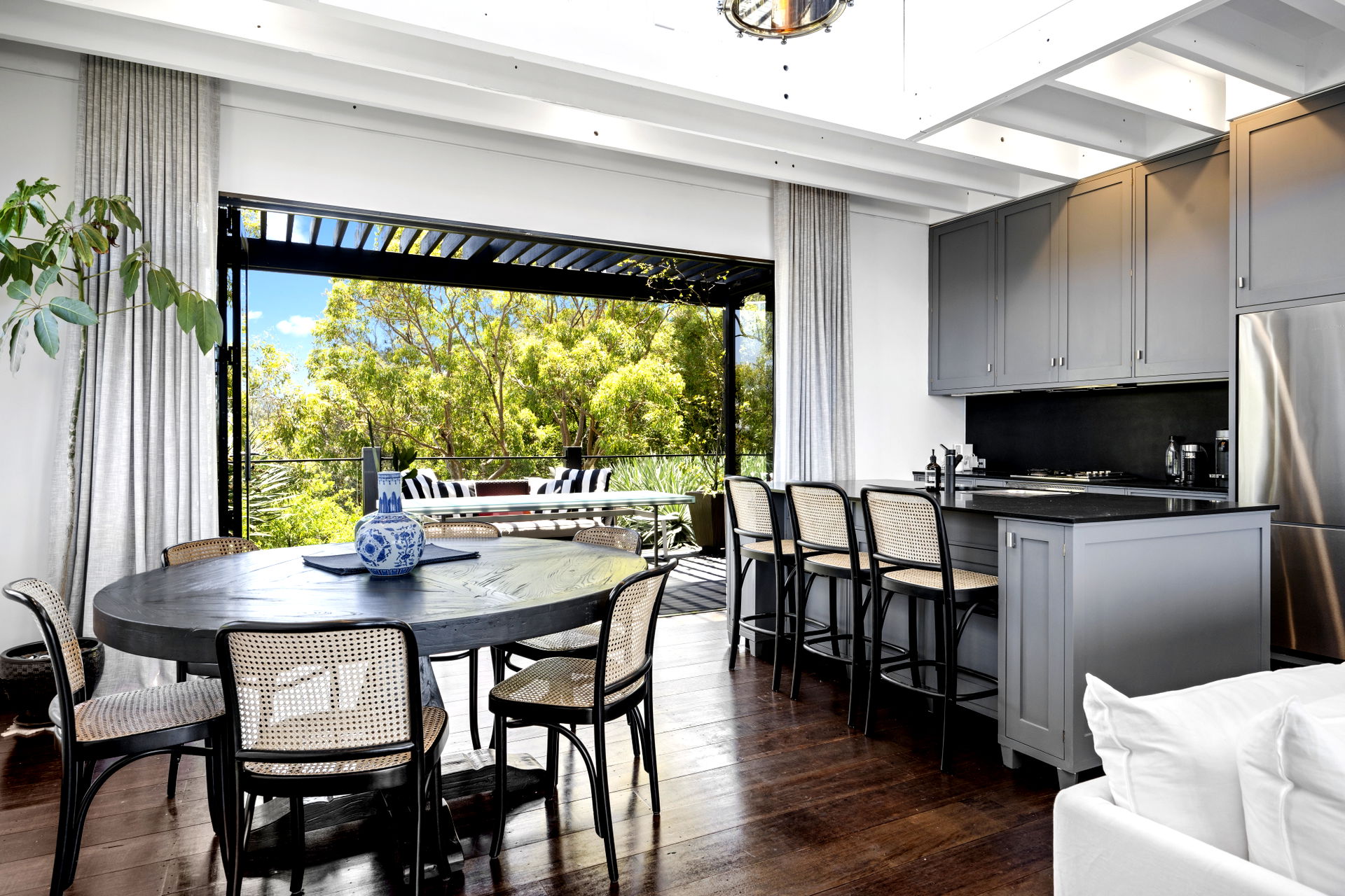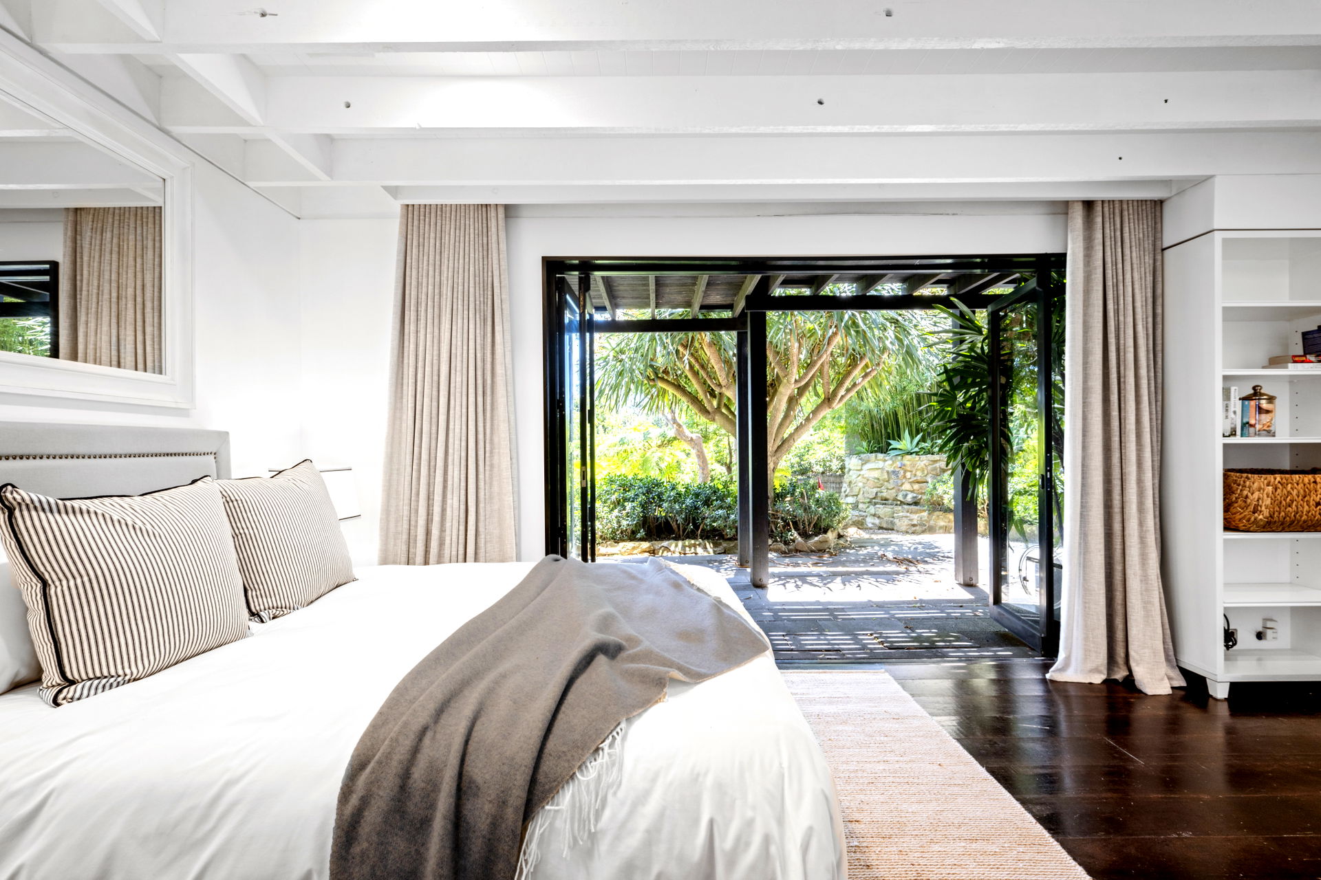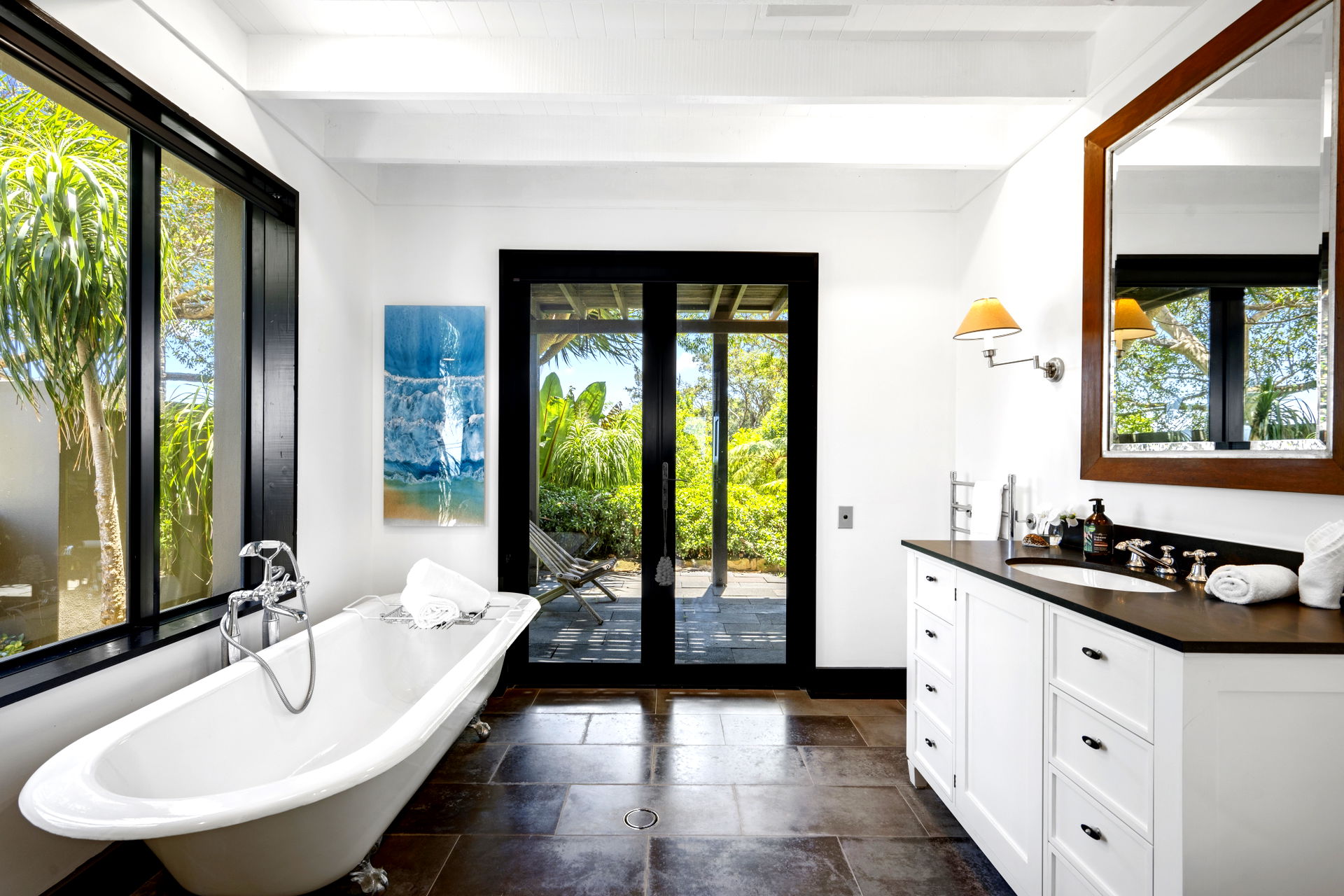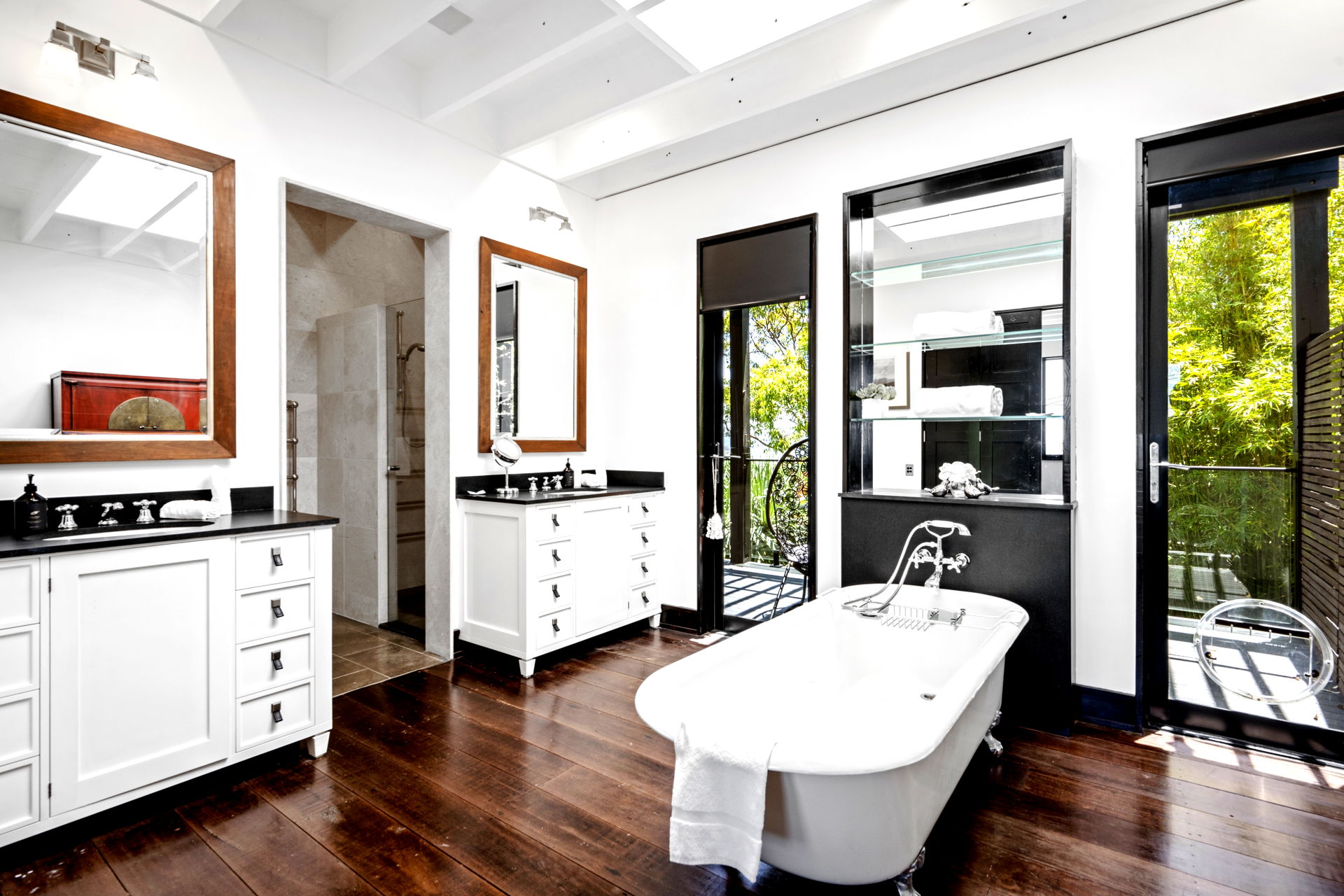 This retreat is refined and polished, the open interiors were designed by Thomas Hamel and are the definition of understated elegance; showcasing a lofty atrium design, the antique hardwood floors and extensive glazing on either end frame those unforgettable views.