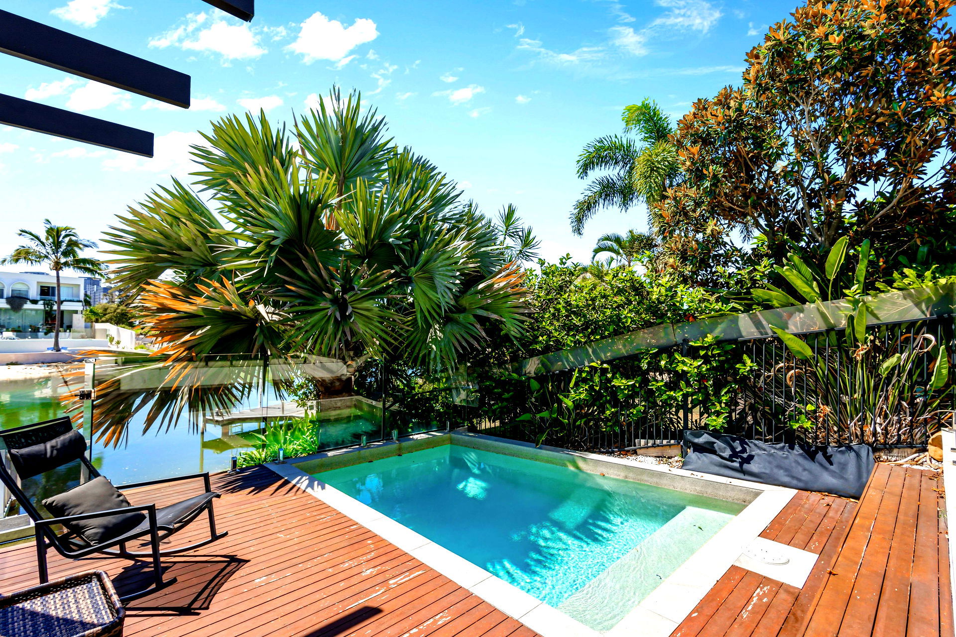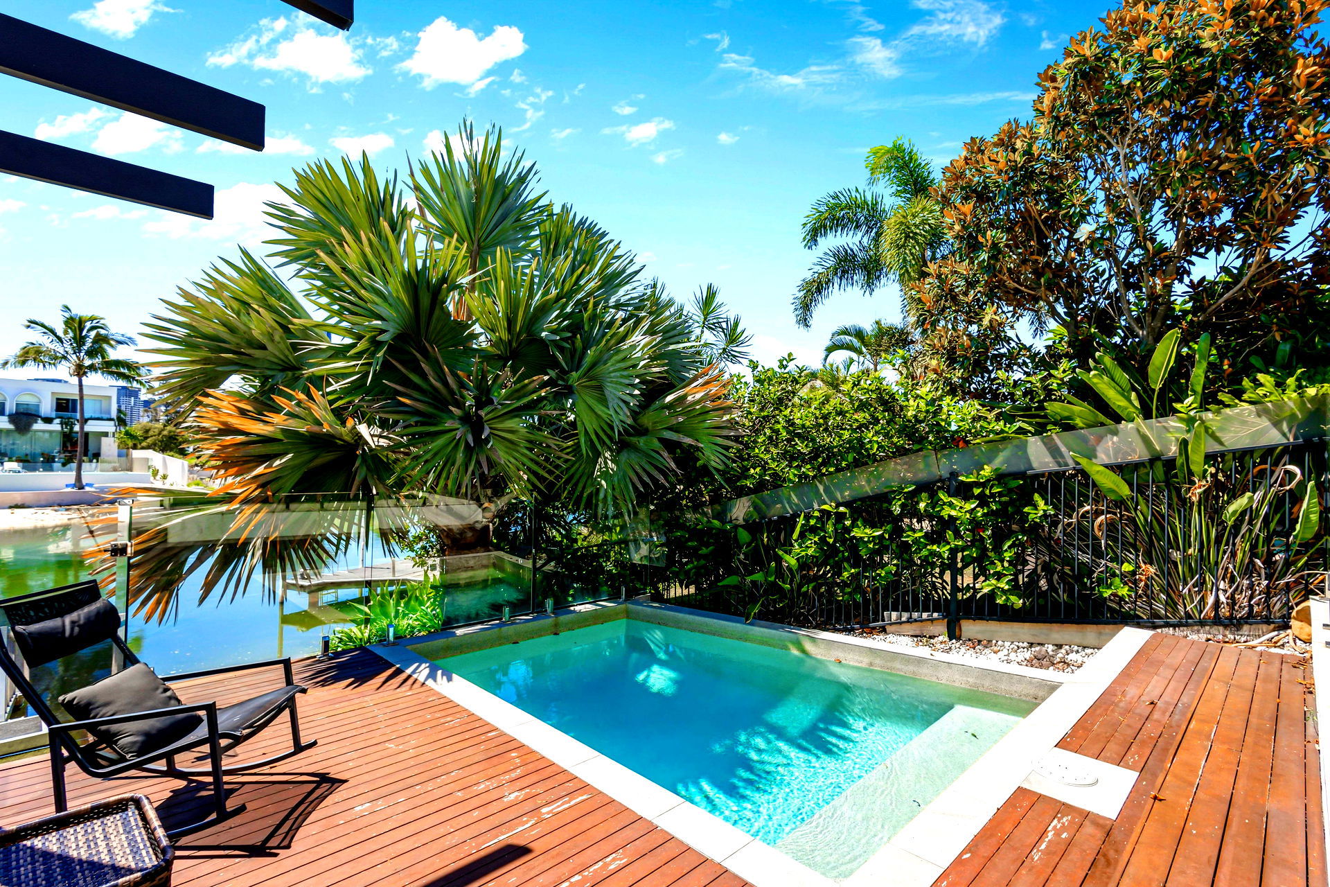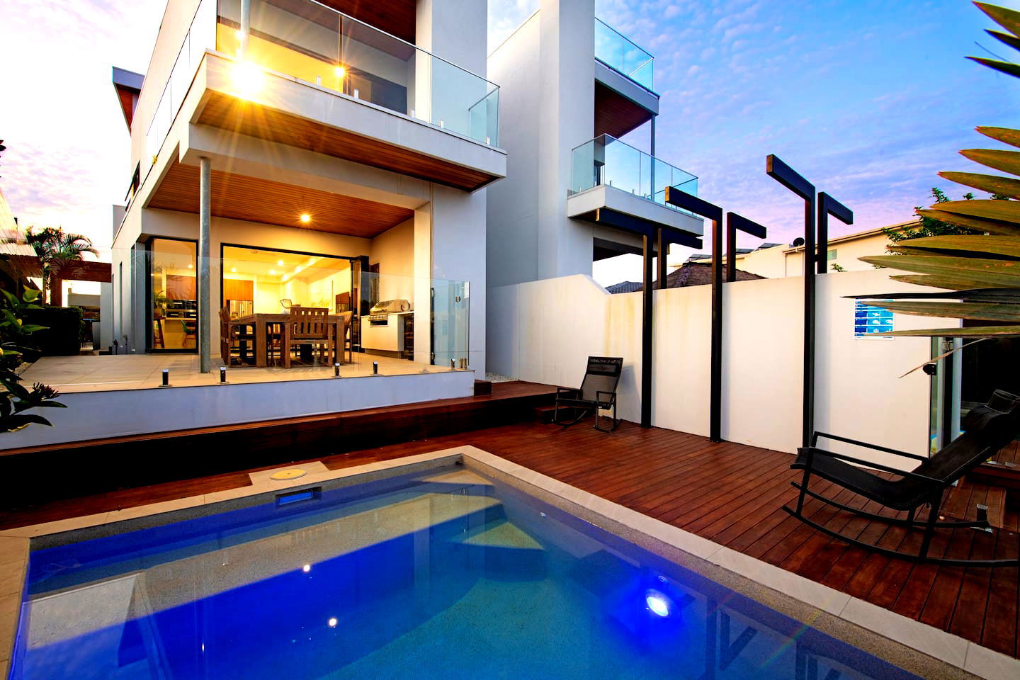 Welcome to WANDERLUST at Broadbeach Waters. This modern 5 bedroom waterfront home captures the very best of the Gold Coast lifestyle. WANDERLUST is a spectacular 3 story home having everything for a perfect holiday. Having a private FULLY HEATED waterfront dunk pool, alfresco BBQ & dining, 3rd level “Sky Deck”, pool table, floor to ceiling sliding glass doors to capture the breeze and a shared jetty is perfect for fishing and watercraft.