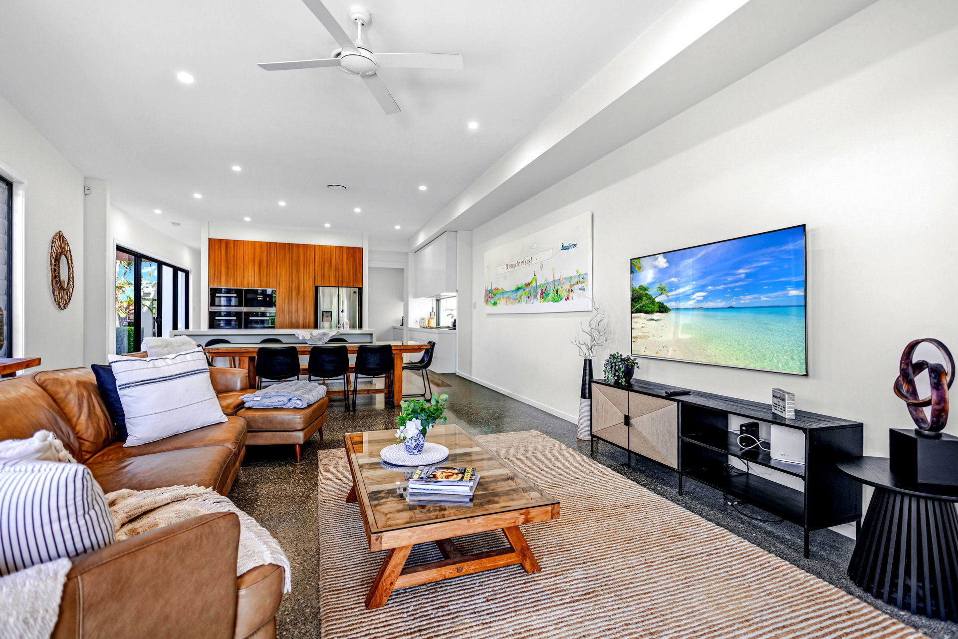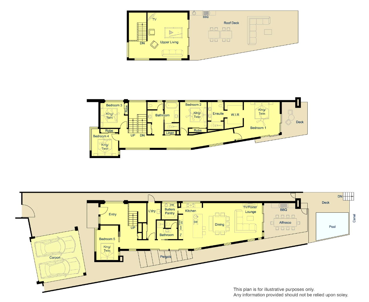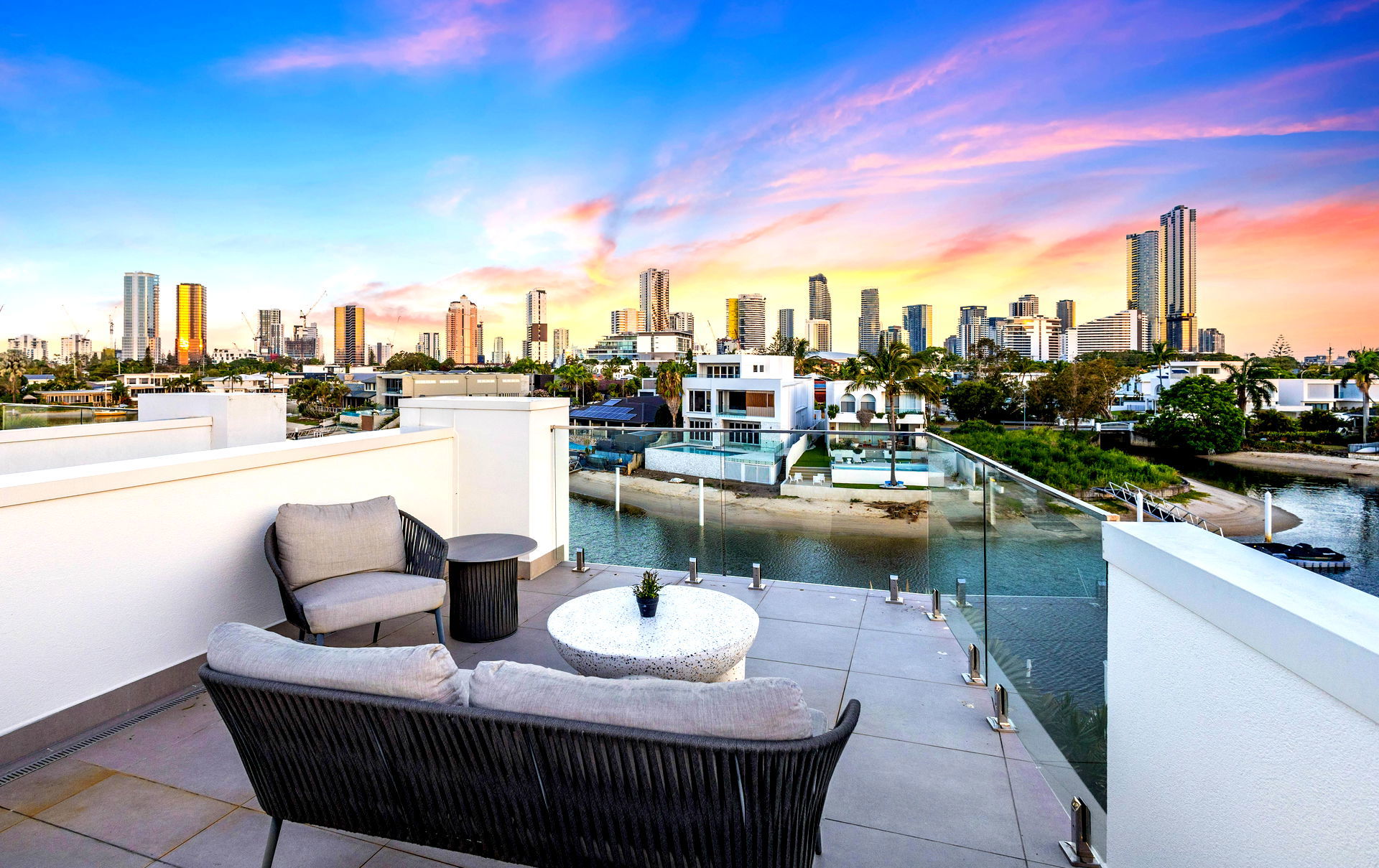 Welcome to WANDERLUST at Broadbeach Waters. This modern 5 bedroom waterfront home captures the very best of the Gold Coast lifestyle. WANDERLUST is a spectacular 3 story home having everything for a perfect holiday. Having a private FULLY HEATED waterfront dunk pool, alfresco BBQ & dining, 3rd level “Sky Deck”, pool table, floor to ceiling sliding glass doors to capture the breeze and a shared jetty is perfect for fishing and watercraft.