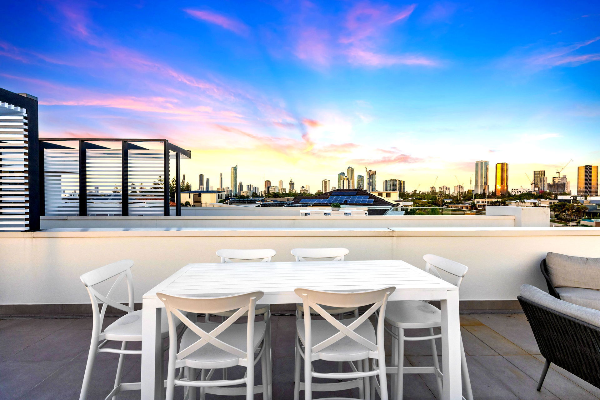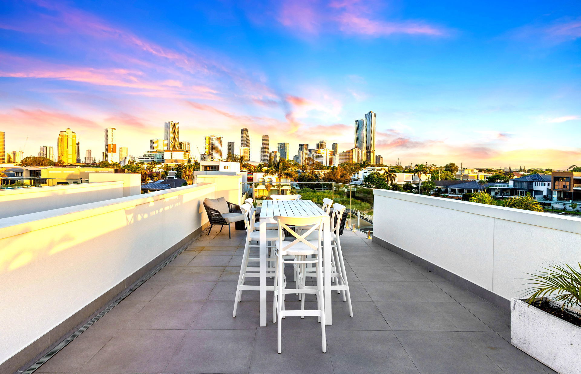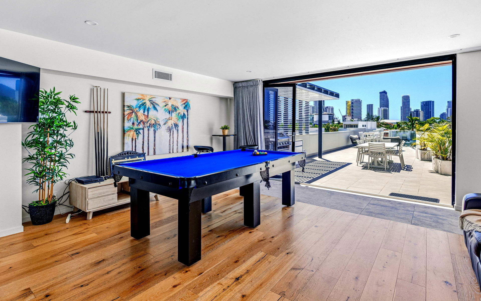 The highlight of this home is the wonderful “Sky Deck” which provides immaculate 180 degree views setup with a huge lounge, high top table and chairs as well as a big 4 burner BBQ. Your family will love the golden sunset from the rooftop which is perfect to relax after a day at the beach or visiting theme parks. A fully covered section of the sky deck is your home away from home, complete with a casual TV lounge area, PlayStation 4, pool table and bar seating. It’s a brilliant space for teenagers to hang out or families to separate for some time out.
