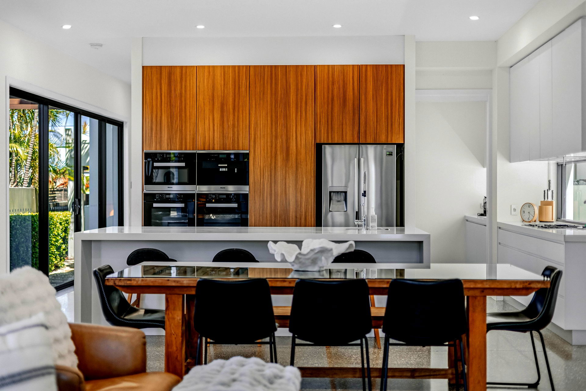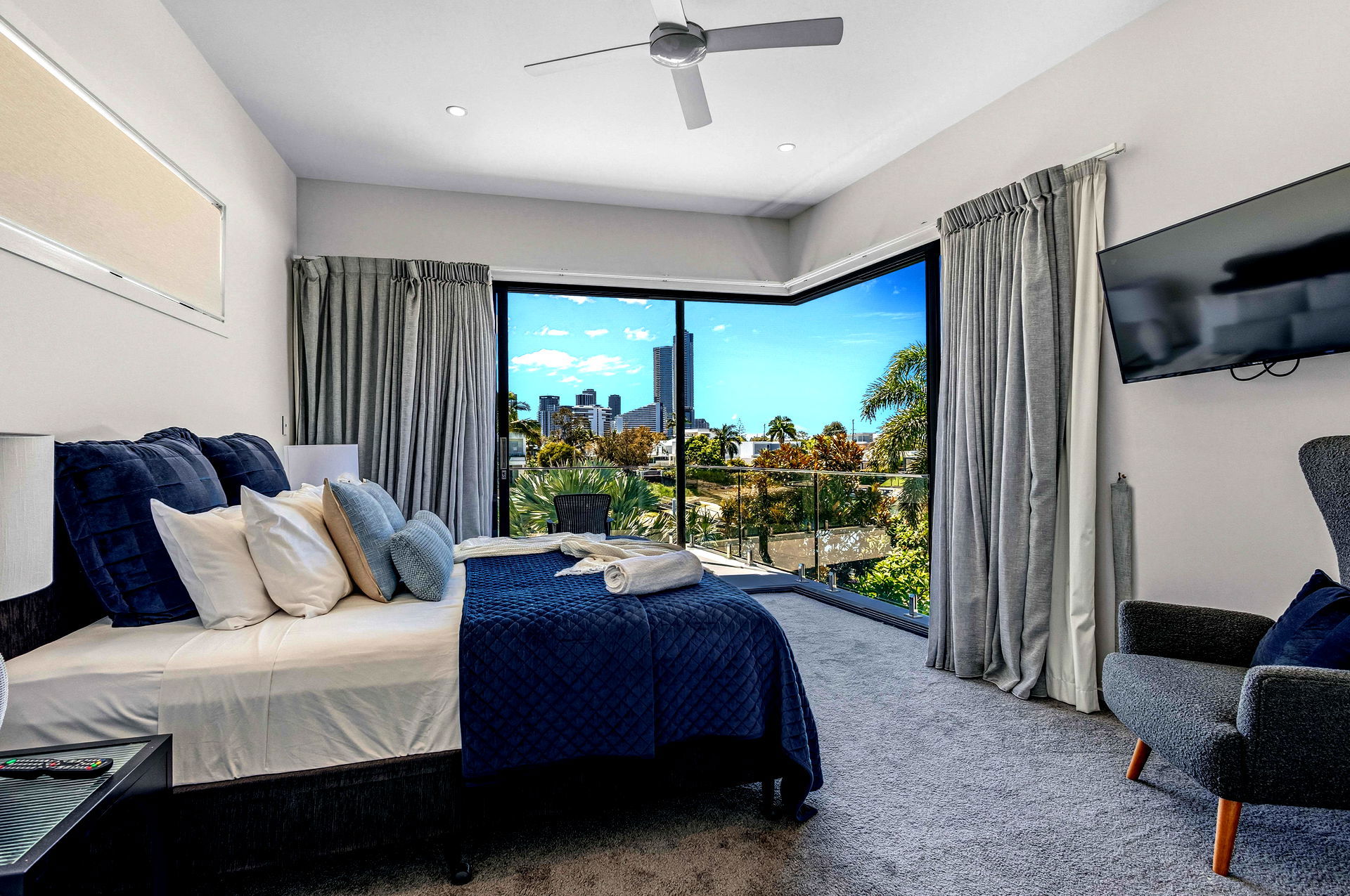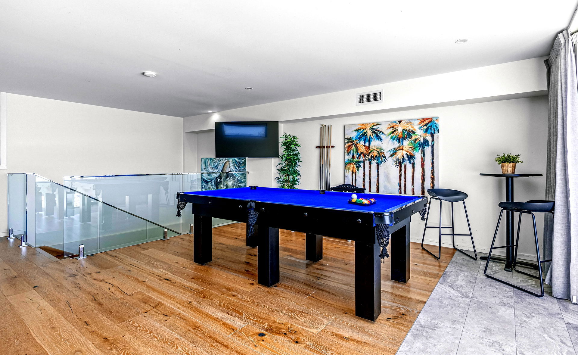 The highlight of this home is the wonderful “Sky Deck” which provides immaculate 180 degree views setup with a huge lounge, high top table and chairs as well as a big 4 burner BBQ. Your family will love the golden sunset from the rooftop which is perfect to relax after a day at the beach or visiting theme parks. A fully covered section of the sky deck is your home away from home, complete with a casual TV lounge area, PlayStation 4, pool table and bar seating. It’s a brilliant space for teenagers to hang out or families to separate for some time out.