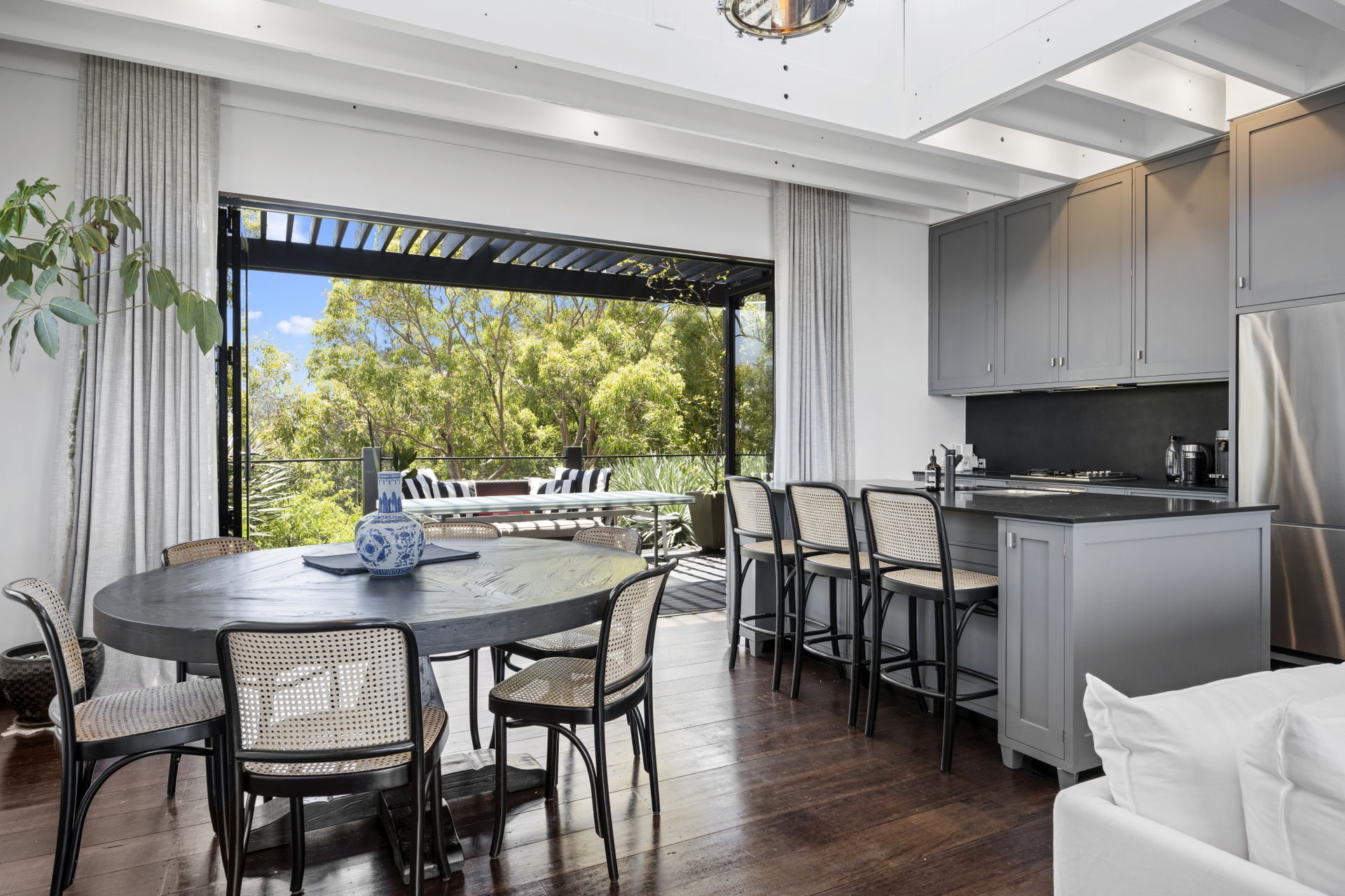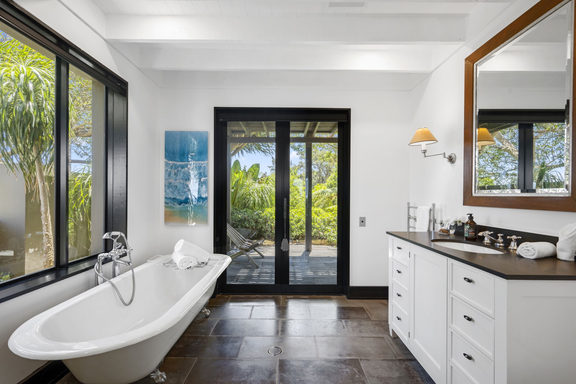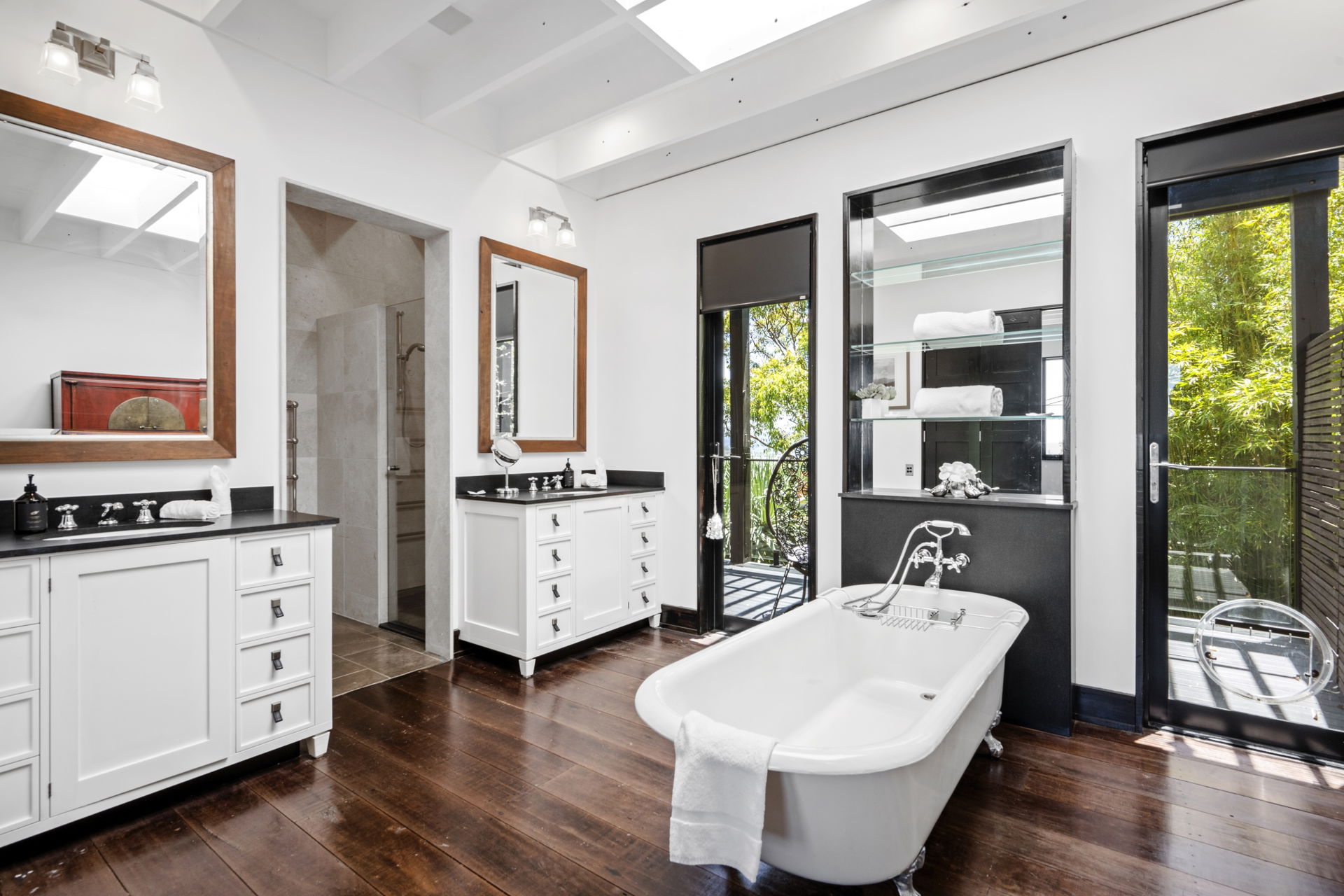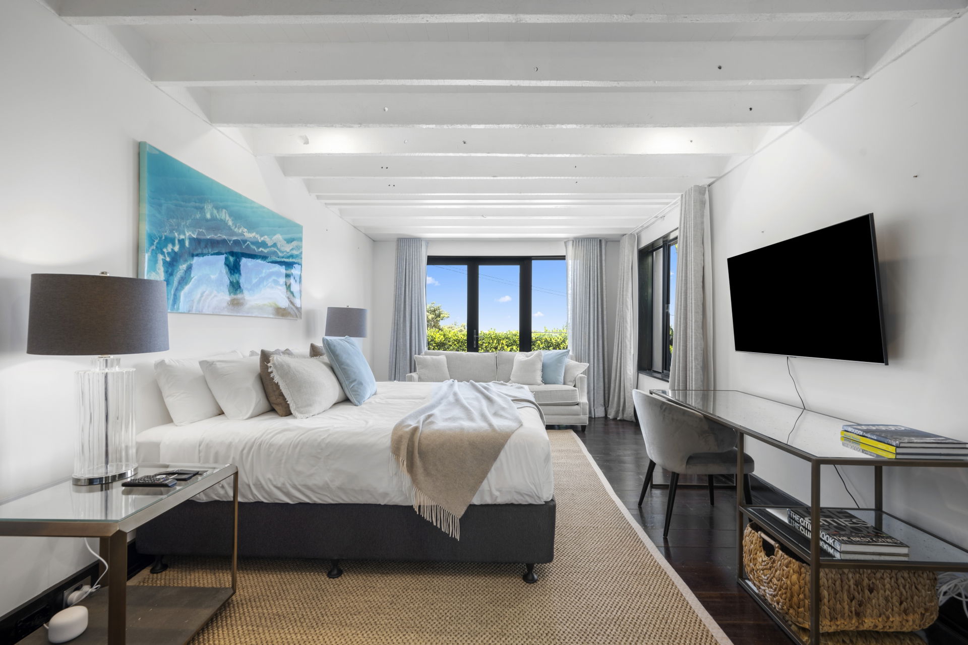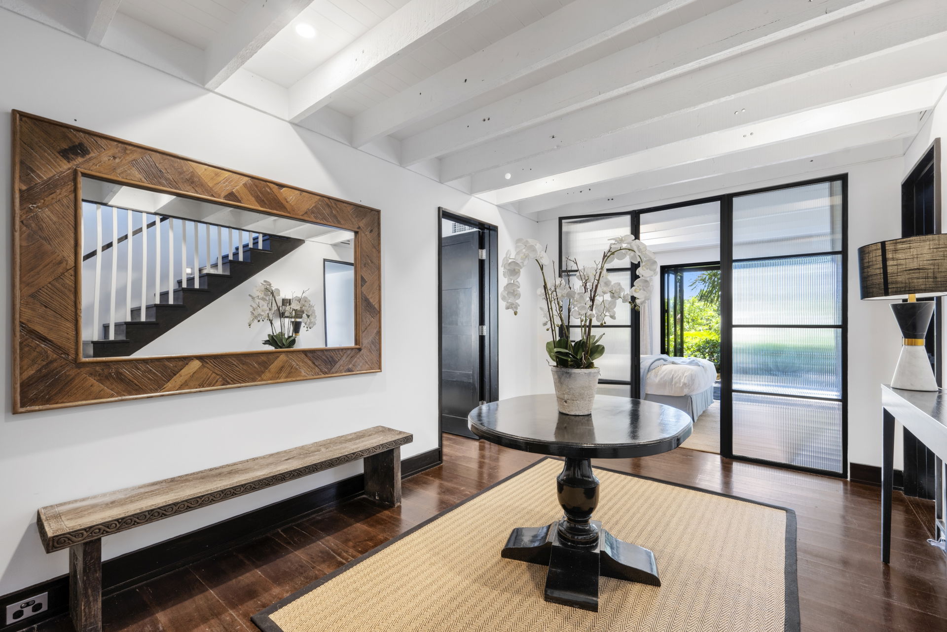 This retreat is refined and polished, the open interiors were designed by Thomas Hamel and are the definition of understated elegance; showcasing a lofty atrium design, the antique hardwood floors and extensive glazing on either end frame those unforgettable views.